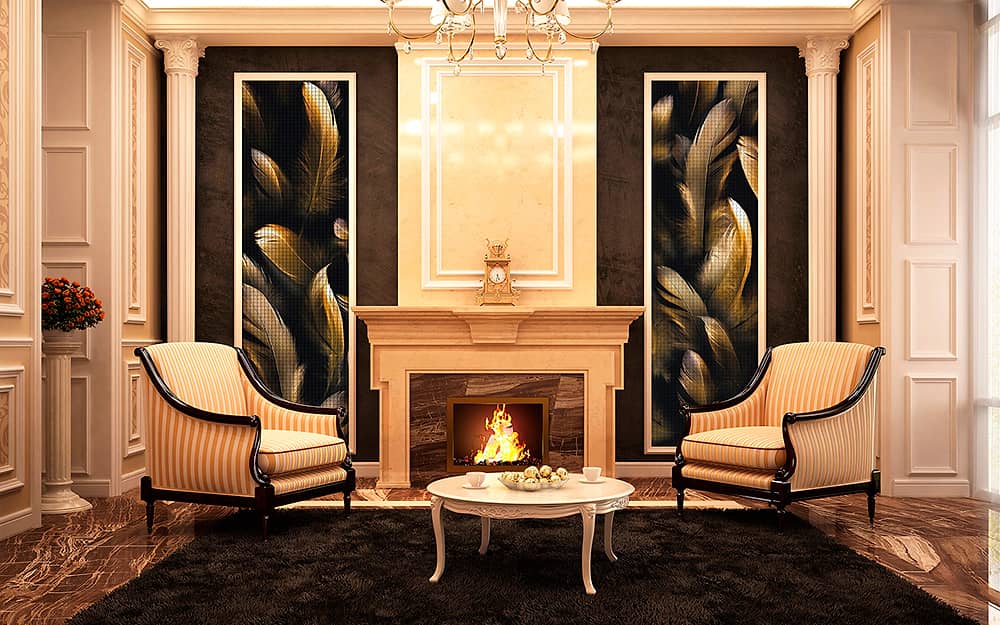 Технология производства материала позволяет воплощать в мозаичной технике любые изображения неограниченных размеров, как из нашего каталога, так и под заказ! Мозаику можно применять не только для отделки бассейнов и ванных комнат, но и в виде скинали (кухонных фартуков), бордюров и декоров, декорировать мебель и предметы интерьера.