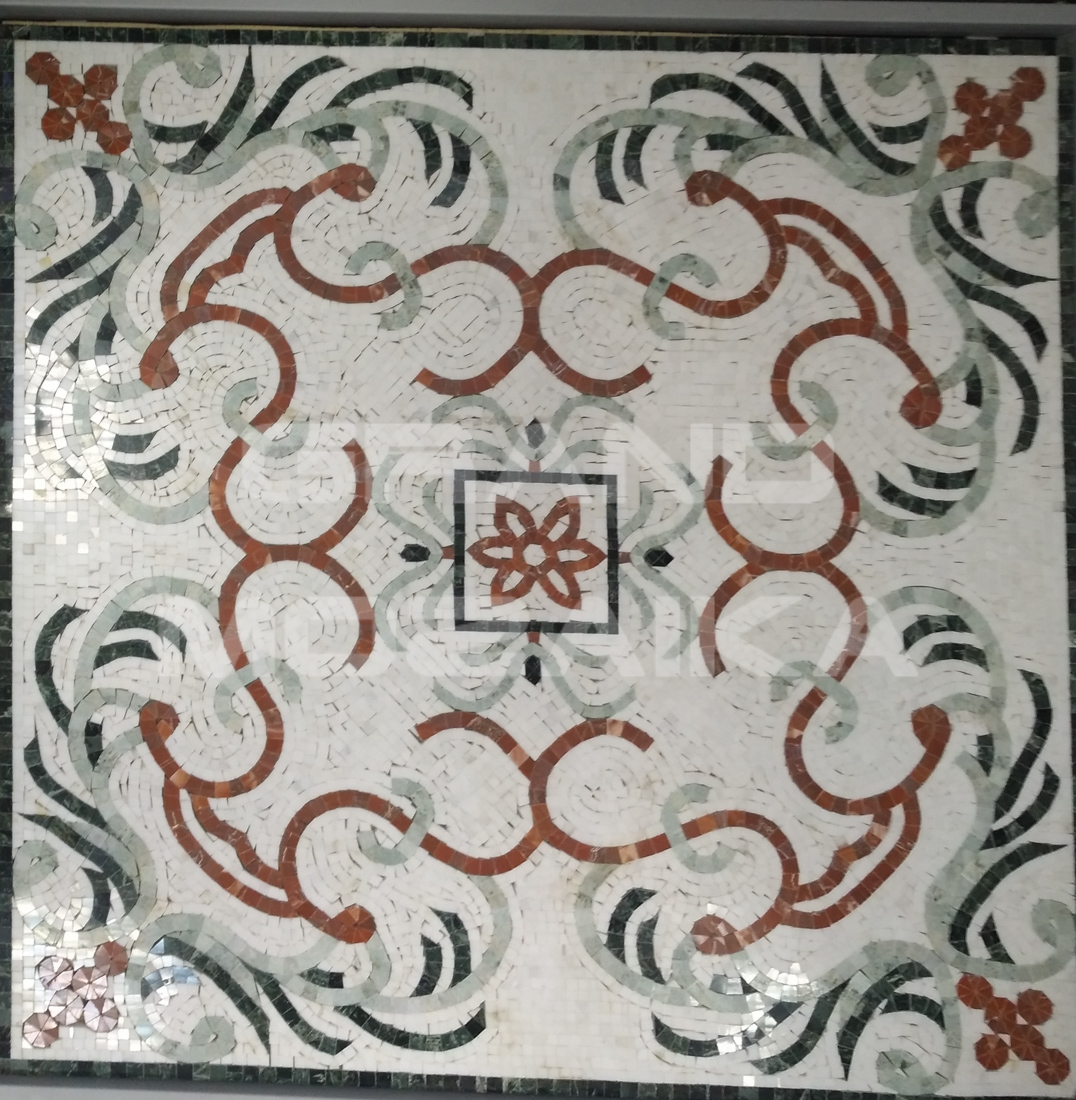 Мозаичные ковры NATURAL выложены из мрамора различных цветов. Панно размером 1000х1000 мм украсит любой дом и привнесет в него необыкновенный колорит. Такой ковер не оставит никого равнодушным и прослужит много лет, не потеряв первоначальных свойств.