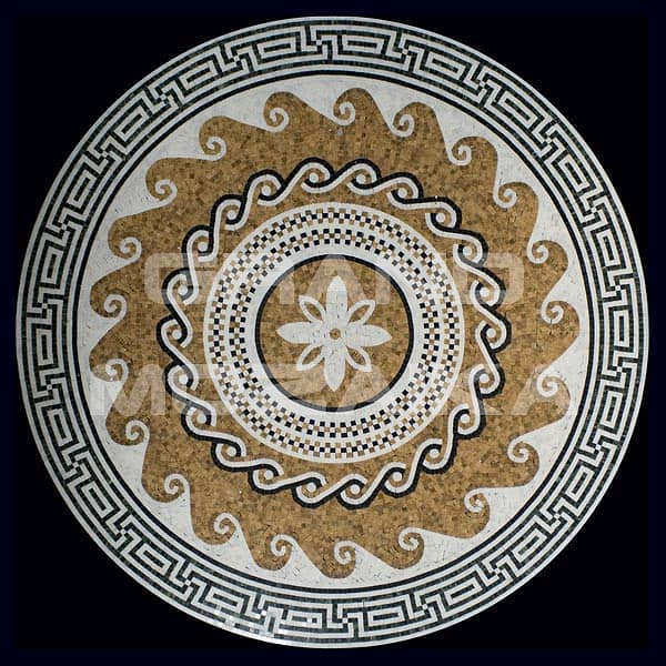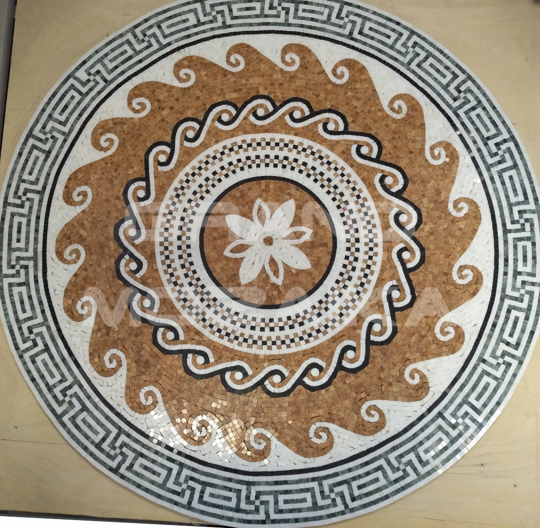 Мозаичные розоны NATURAL выложены из мрамора различных цветов.Панно круглой формы диаметром 1000 мм. Его можно использовать в интерьере как на стене, потолке или полу, как и любая мозаика она необычайно прочна. Такой ковер не оставит никого равнодушным и прослужит многие годы, не потеряв первоначальных свойств.