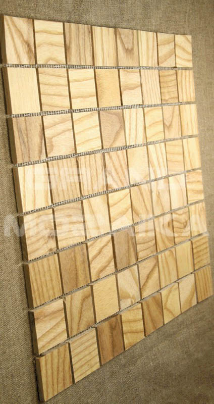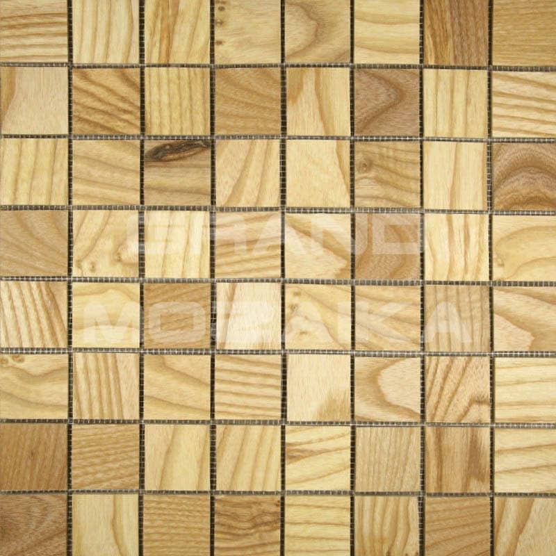 Деревянная мозаика, пропитанная натуральным маслом и покрытая пчелиным воском (не парафином), что делает ее устойчивой к влаге.