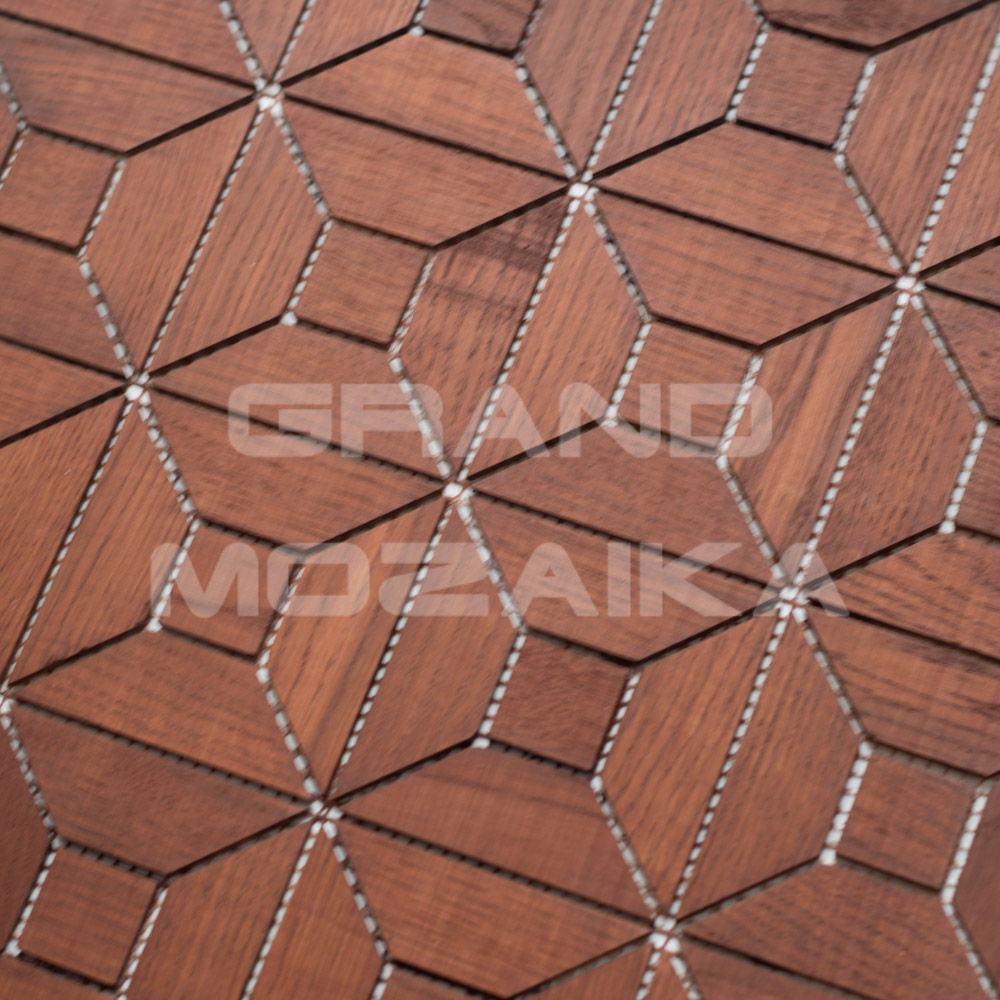 Деревянная мозаика MosArt обработана натуральным масловоском, что даёт возможность применять ее в интерьерах влажных помещений (исключен прямой контакт с водой).