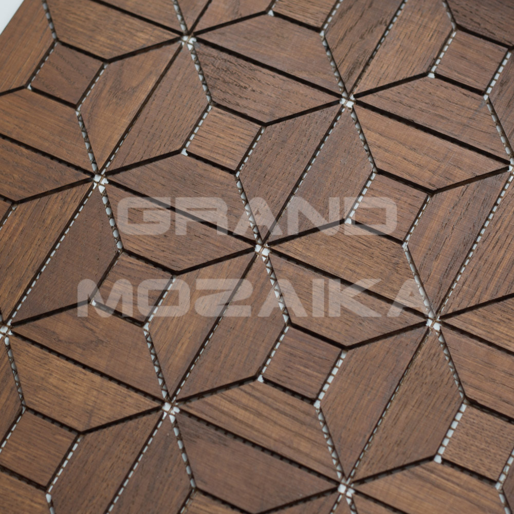 Деревянная мозаика MosArt обработана натуральным масловоском, что даёт возможность применять ее в интерьерах влажных помещений (исключен прямой контакт с водой).