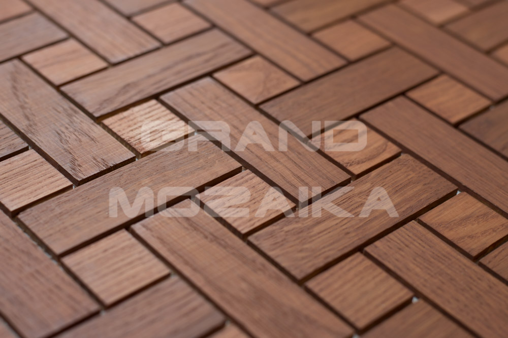 Деревянная мозаика MosArt обработана натуральным масловоском, что даёт возможность применять ее в интерьерах влажных помещений (исключен прямой контакт с водой).