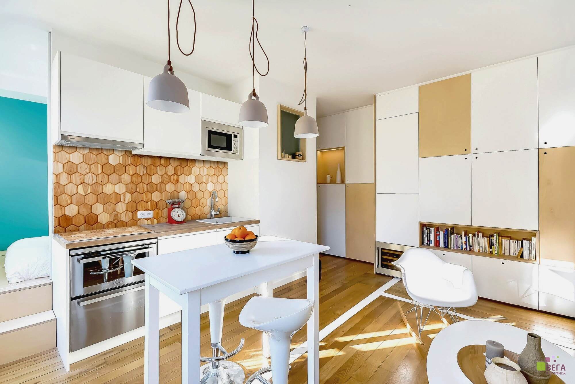 - Плитка влагостойкая, можно использовать на кухонный фартук без прямого попадания струй воды. Но не рекомендуется, если установлена газовая плита.