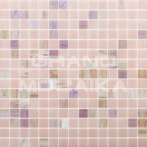 Мозаика для бассейнов серии Смеси из кусочков размером 20х20 см. Полотно 327х327 легко в монтаже и не требует особых навыков. Основной цвет полотна нежно-розовый с добавлением мозаик с необычным размытым рисунком сиреневого цвета. Такое полотно украсит любой бассейн и подойдет как для внутренней его отделки так и для внешней.