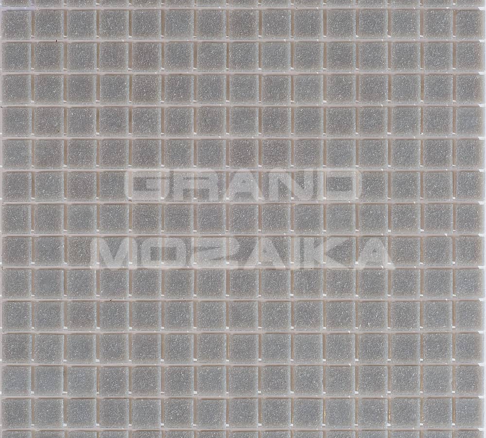 Стеклянная мозаика однородного дымчато-серого цвета серии Sandy. Поверхность мозаики глянцевая, размер чипа - 20х20 мм. Размер сетки 327х327 мм. Такая мозаика украсит поверхность бассейна любой формы и размера.