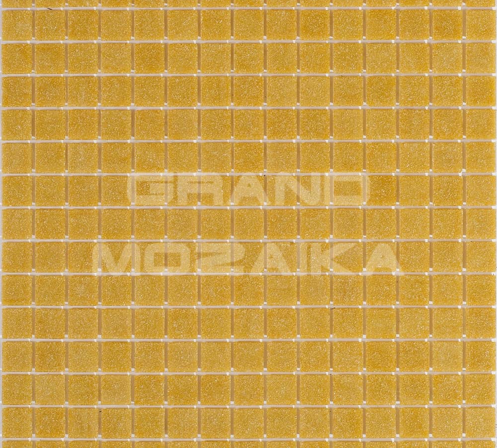 Стеклянная мозаика цвета желтого золота серии Sandy. Поверхность мозаики глянцевая, размер чипа - 20х20 мм. Размер сетки 327х327 мм. Такая мозаика украсит поверхность бассейна любой формы и размера.