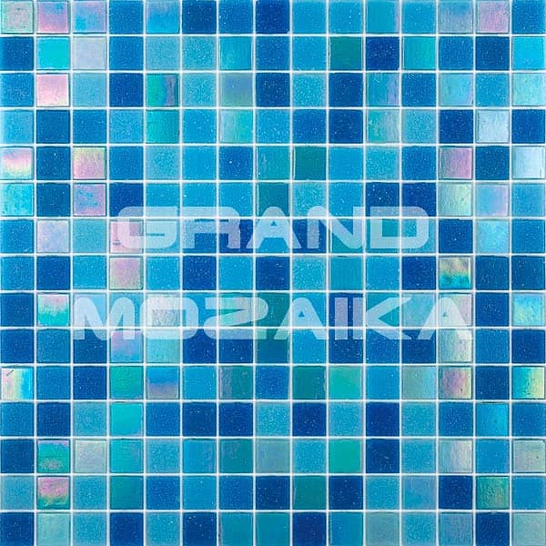 Мозаика для бассейнов серии Смеси из кусочков размером 20х20 см. Полотно 327х327 легко в монтаже и не требует особых навыков. В мозаике очень гармонично сочетаются матовые и глянцевые кусочки бирюзового цвета, а так же немного белых перламутровых. Такое полотно украсит любой бассейн и подойдет как для внутренней его отделки так и для внешней.
