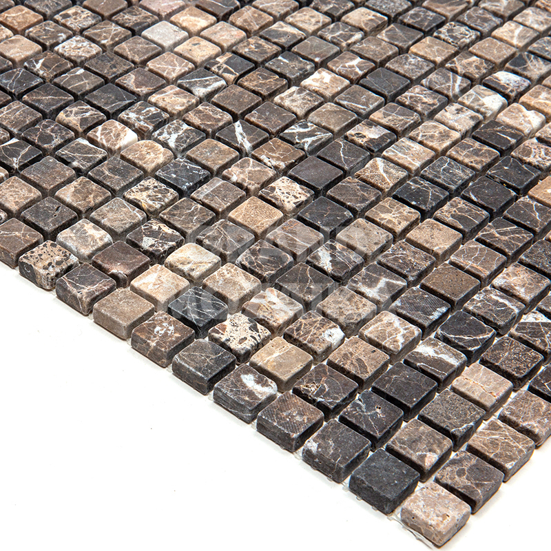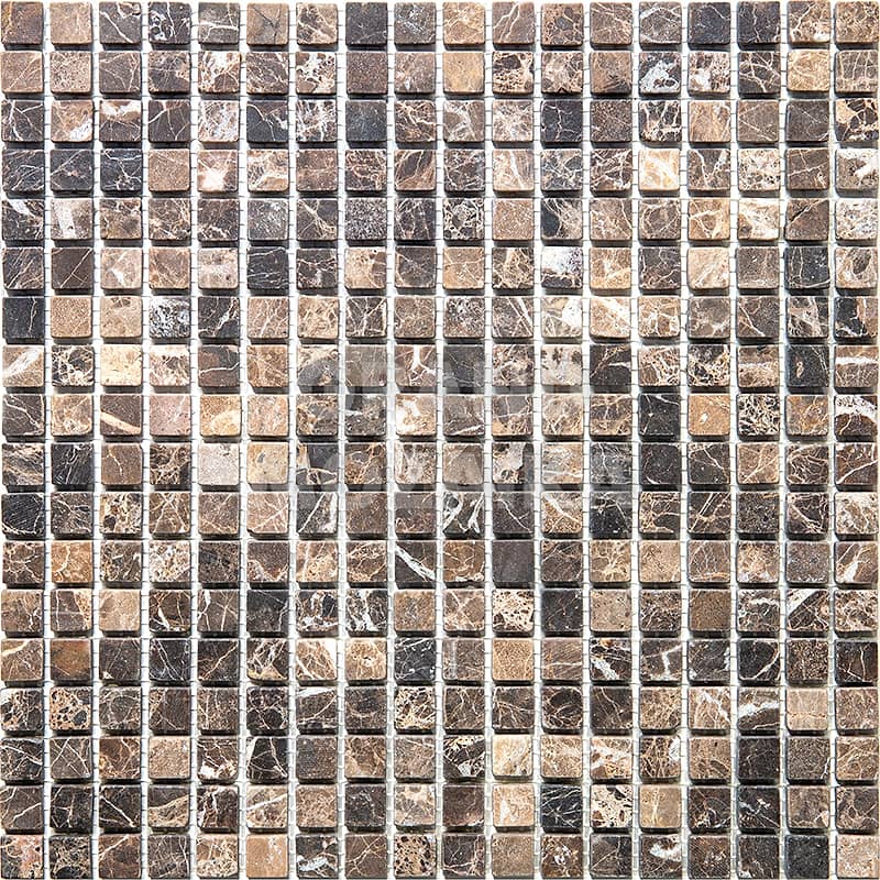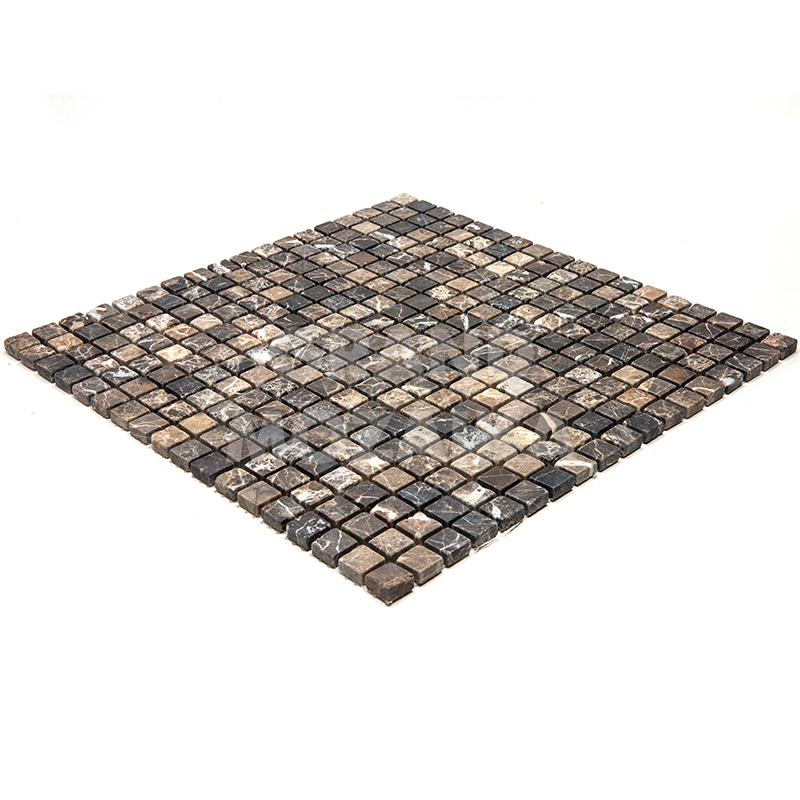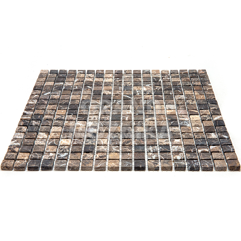 Мозаика из натурального камня серии Adriatica состоит из маленьких кусочков размером 15х15 мм. Полотно 305х305 выполнено из полированного коричневого мрамора . Такая мозаика прослужит долгие годы и не потеряет своих свойств.