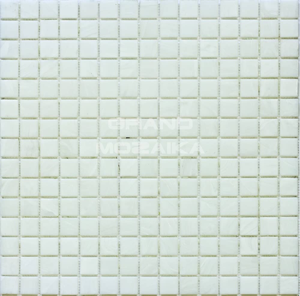 Мозаика серии Alba. Материал - непрозрачное стекло. Цвет неоднородный – белый со светлыми элементами. Поверхность гладкая, глянцевая. Размер плиток 20х20 мм. Благодаря устойчивости к различным атмосферным осадкам стеклянная мозаика серии Alba отлично подойдет для облицовки открытых бассейнов. Оригинально будет смотреться на стенах кухонь и ванных комнат.