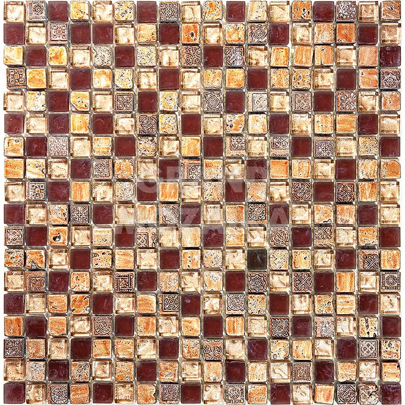 Элитная мозаика Luxury серии Inka состоит из кусочков размером 15х15 мм. Полотно выполнено из мозаик приглушенного светло-бежевого и коричневого цвета. Вкрапление мозаик с незамысловатым орнаментом делает полотно оригинальным. Интерьер дополненный такой мозаикой окунет вас в анналы древности.