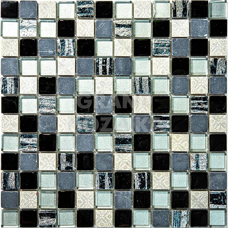 Элитная мозаика Luxury серии Inka состоит из кусочков размером 23х23 мм. Полотно выполнено из мозаик приглушенного серого, черного,серебряного и синего цветов. Вкрапление мозаик с необычным рисунком, напоминающим фрески древности, добавляет роскоши в полотно. Такая мозаика сделает любой интерьер оригинальным. Такую мозаику можно так же скомпоновать с аналогичной мозаикой этой серии размера 15х15 мм.