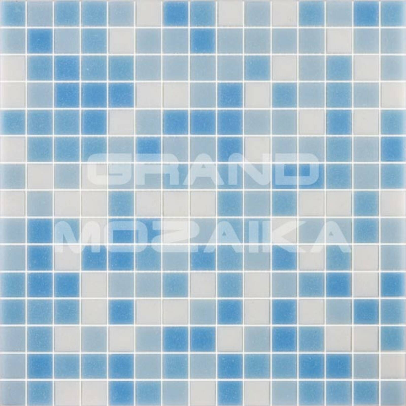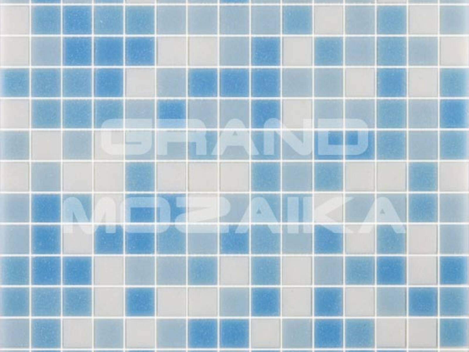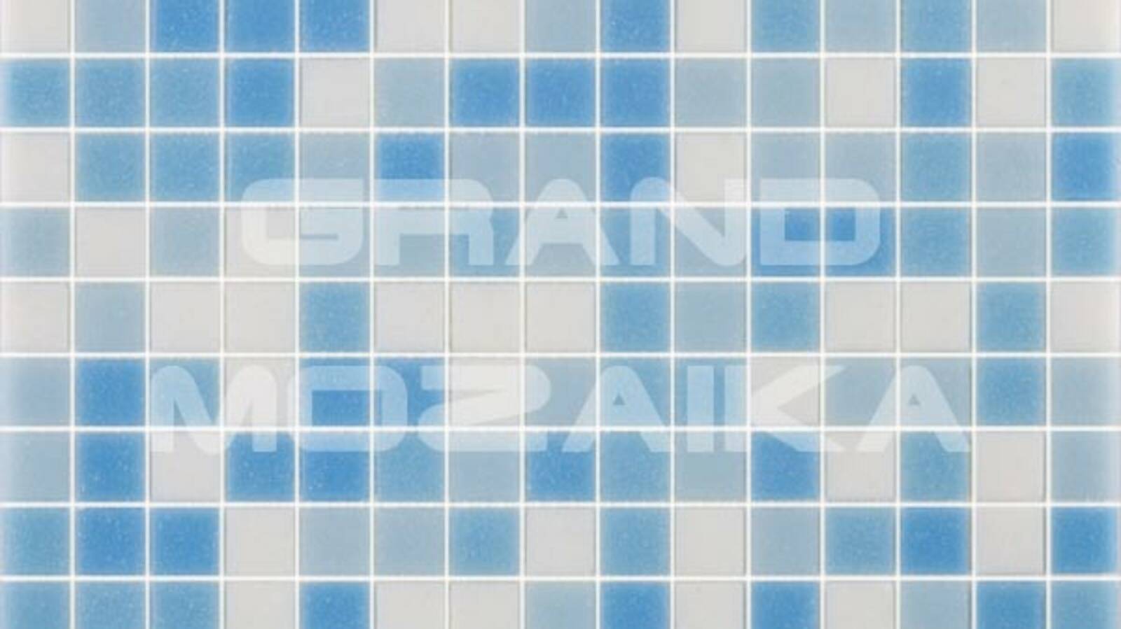 Мозаика для бассейнов серии Смеси из кусочков размером 20х20 см. Полотно 327х327 состоит из кусочков нежно-голубого, небесно-синего и белого цвета, не требует особых навыков монтажа. Такая мозаика украсит любой бассейн и подойдет как для внутренней его отделки так и для внешней.