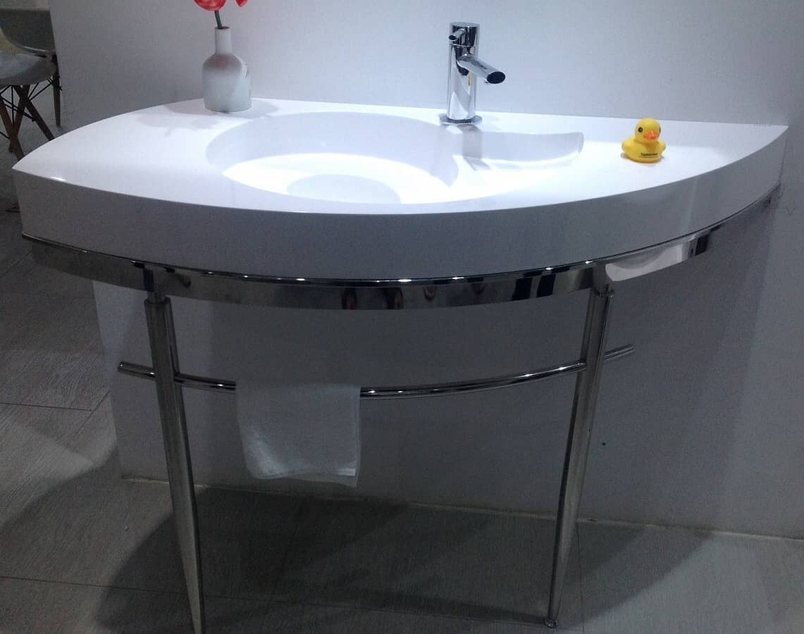 В комплекте консоль и раковина, донный клапан.