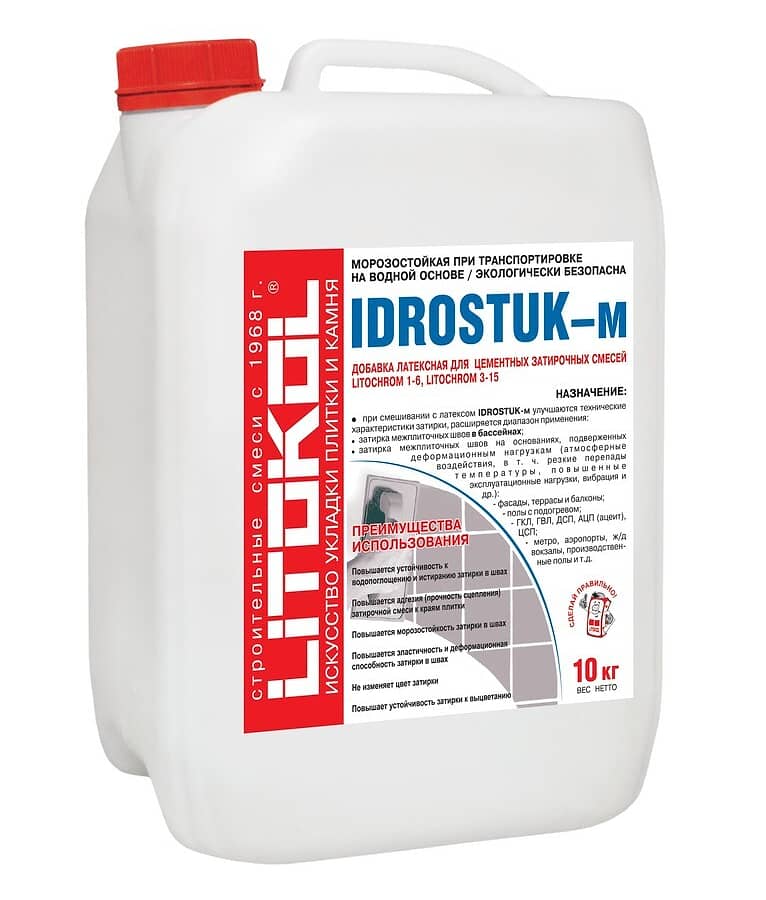 При смешивании с латексом IDROSTUK-м улучшаются технические характеристики затирки, расширяется диапазон применения: