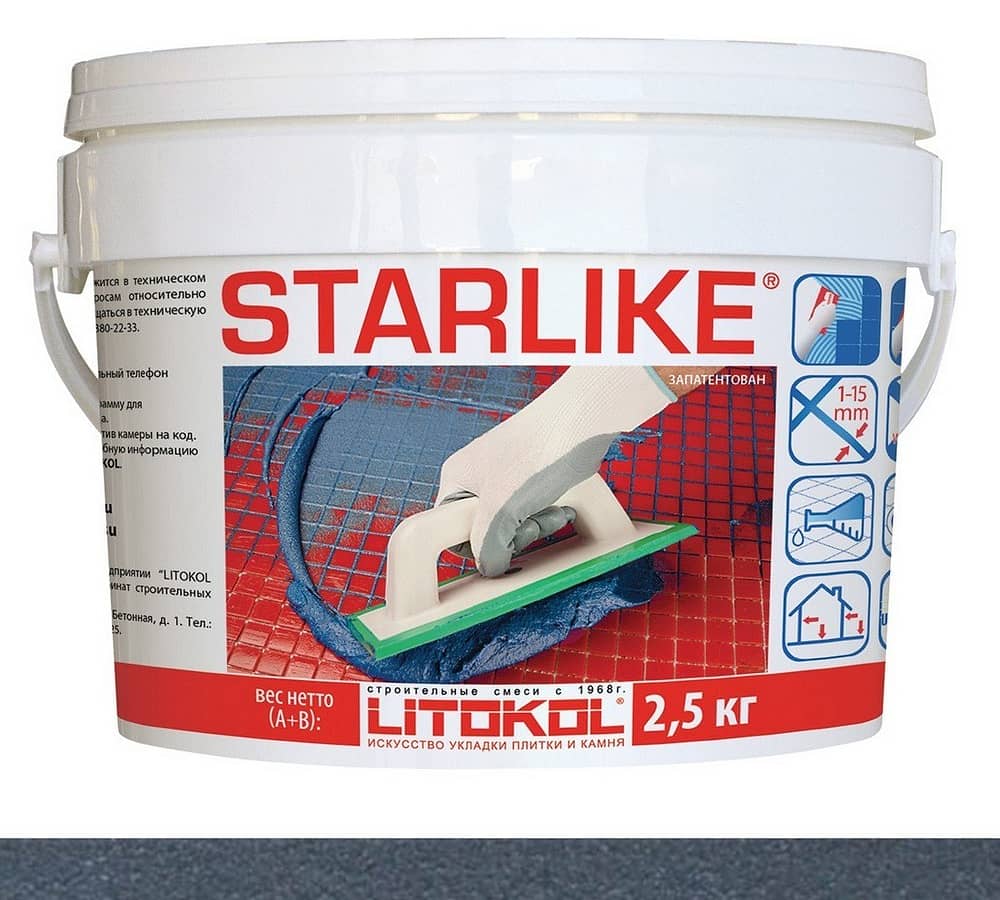 LITOCHROM STARLIKE / ЛИТОХРОМ СТАРЛАЙК применяется для укладки и кислотостойкой затирки облицовки из керамической плитки и мозаики с шириной шва от 1 до 15 мм. Для выполнения внутренней и наружной облицовки: