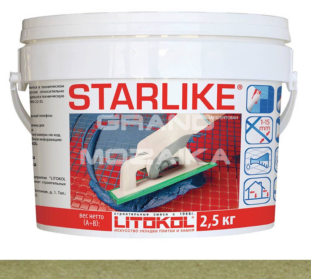 LITOCHROM STARLIKE / ЛИТОХРОМ СТАРЛАЙК применяется для укладки и кислотостойкой затирки облицовки из керамической плитки и мозаики с шириной шва от 1 до 15 мм. Для выполнения внутренней и наружной облицовки: